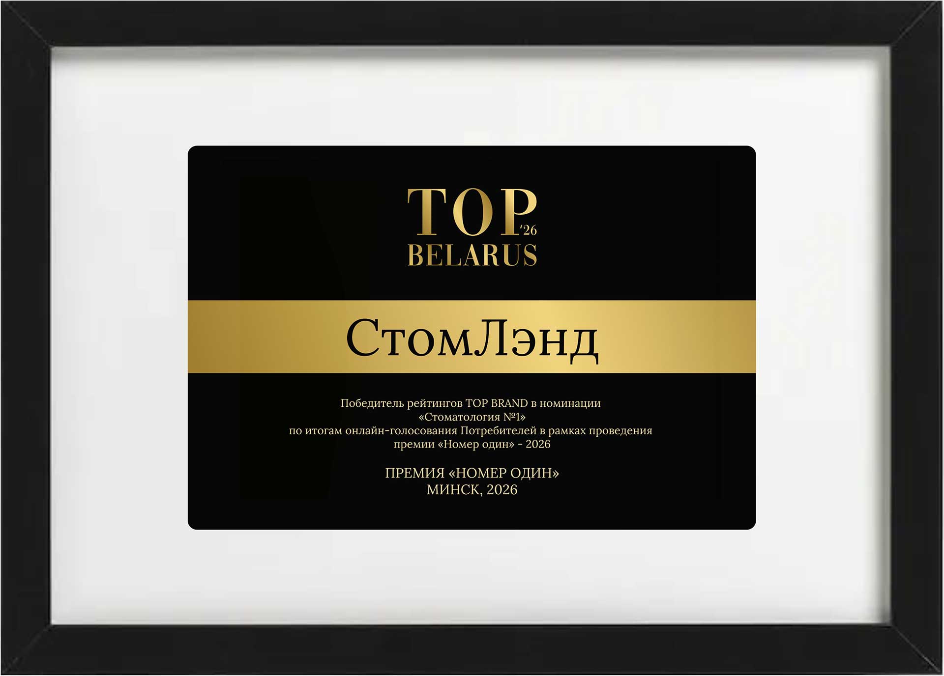 Стоматология «СтомЛэнд» стала победителем в номинации «Стоматология №1» по версии рейтинга Top Brand Belarus 2026 — и для нас это не просто награда, а важный этап в развитии и признание доверия наших пациентов.